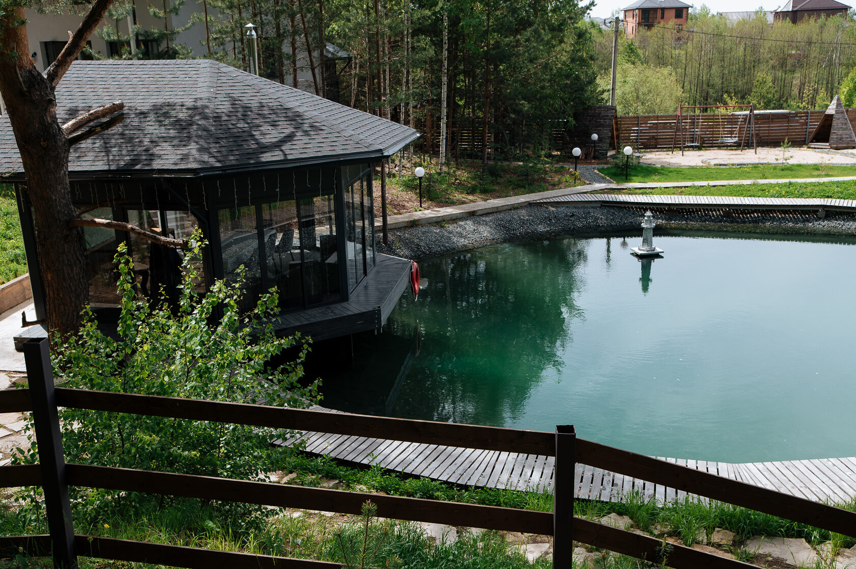 [Күл] в переводе с татарского означает - «Озеро» Помимо гостевых домов на территории есть прозрачный водоём с беседкой прямо над ним. Именно он является символом нашего проекта.