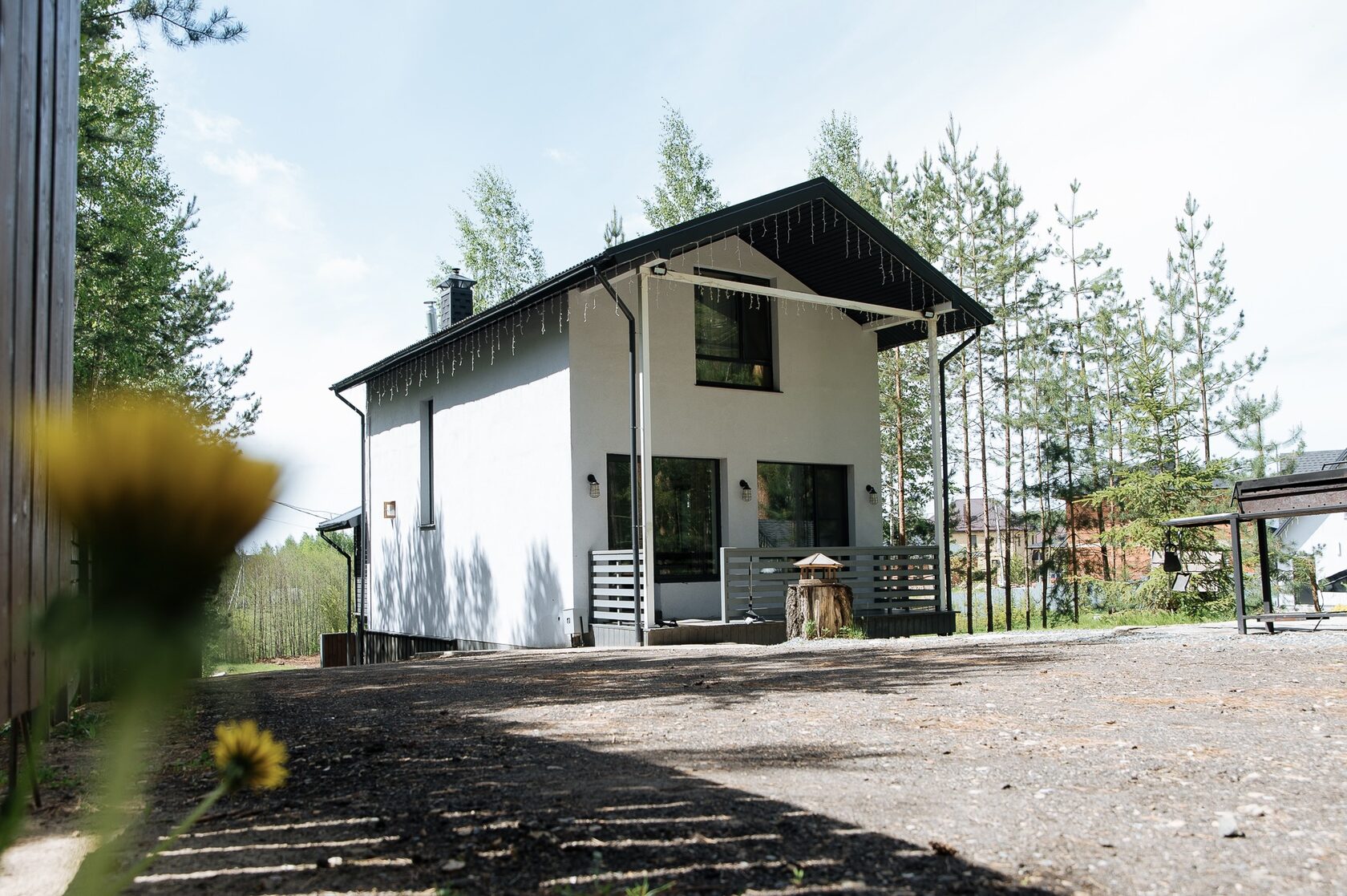 - Мангальная зона - Баня на дровах - Кухня оборудована современной техникой и посудой, обеденным столом на 8-10 персон - 2 санузла (на каждом этаже) - 2 спальни -8 спальных мест(включая диван в гостиной) -Открытая терраса с видом на лес - Wi-fi